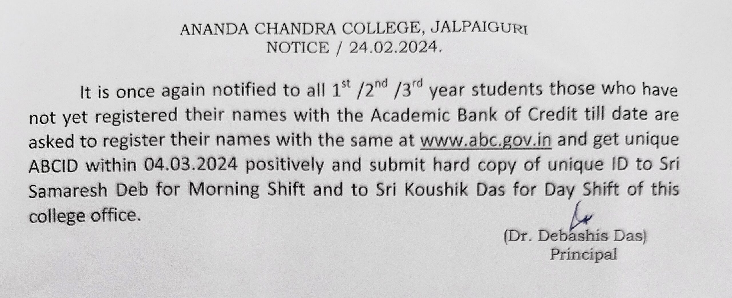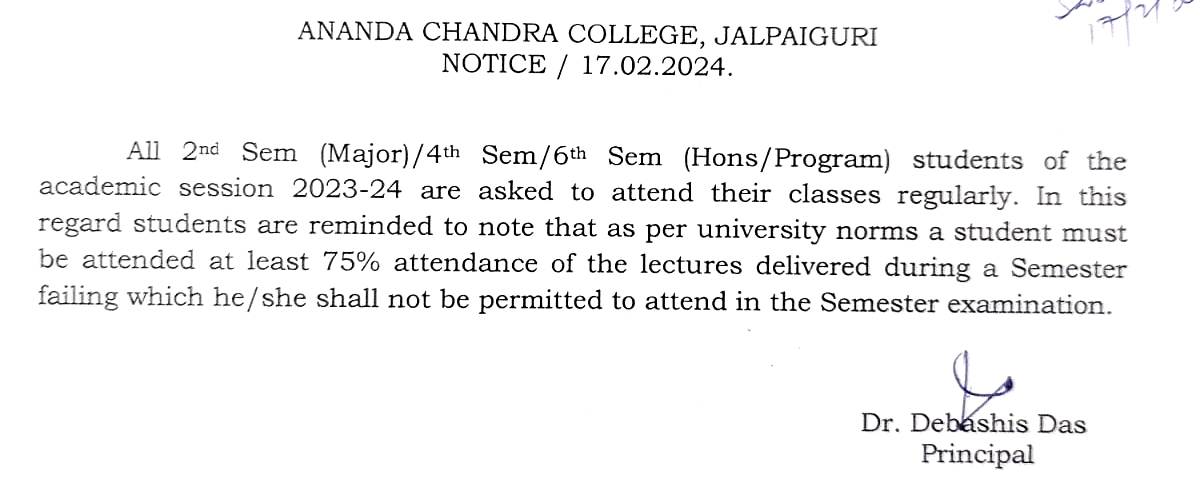 The Contents displayed here are owned & managed by Ananda Chandra College. Copyright restricted. Viewers are hereby restricted from reproduction in any form. Tampering of data in any sort is strictly prohibited and perpetrators caught will be handled seriously according to law of the land.